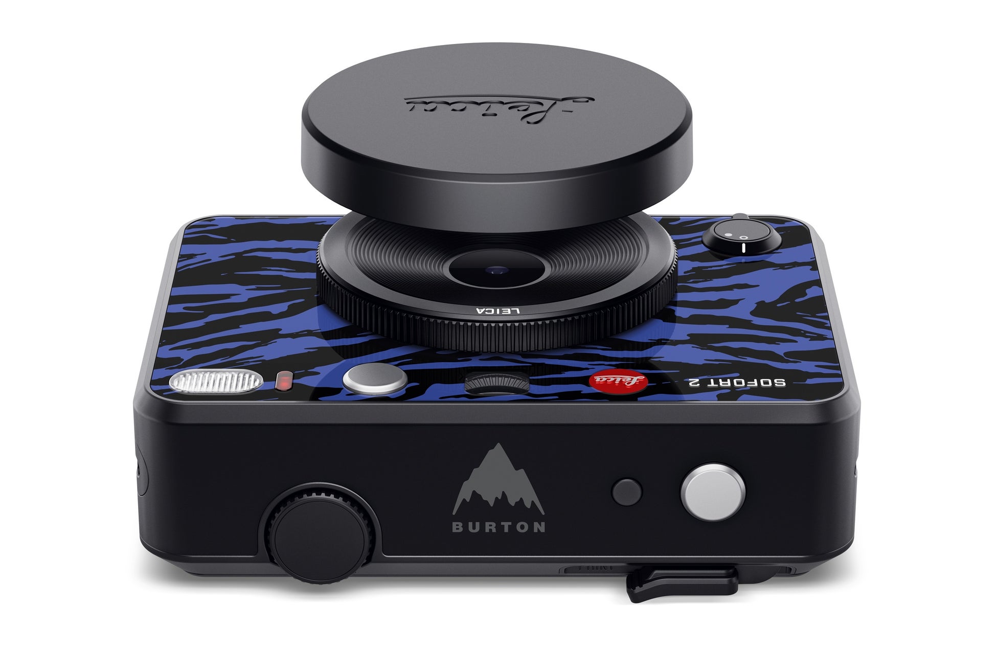 「ライカ ゾフォート2 “Burton Edition”」は、“Jake Blue”と称される特別なブルーにインスピレーションを得ており、印象的なパターンとカメラ上部のカバーに配されたBurtonのロゴが際立ちます。製品には、実用性に優れたBurton製カメラバッグも付属しています。