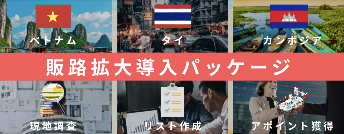 この3つのステップが完了した段階で、販売代理店開拓の成功確率が非常に高まります。今回は、この重要な3つのステップを網羅できる「現地調査」から「商談アポイント獲得」までをパッケージ化しました。