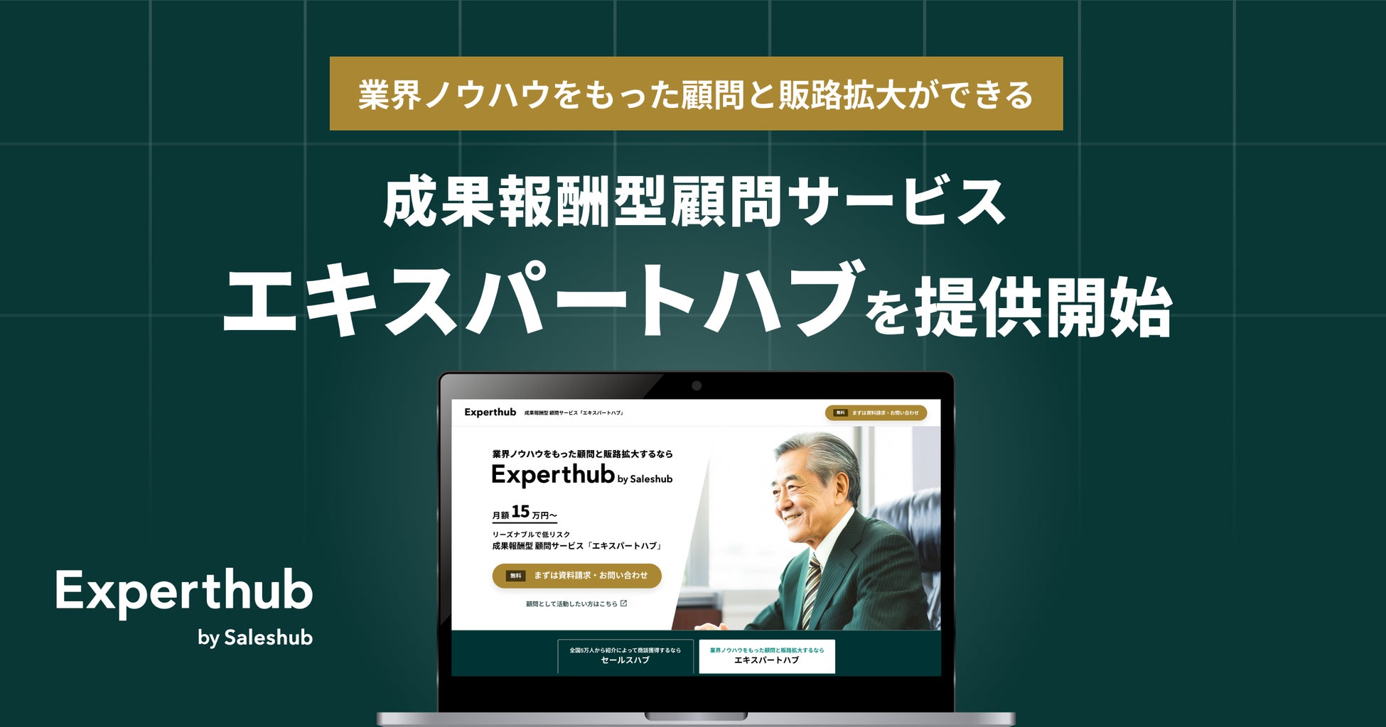 株式会社Saleshubが、新たに成果報酬型顧問サービス「エキスパートハブ」を提供開始。月15万円から低コスト・低リスクに業界に精通した顧問を味方に営業攻略を実現。