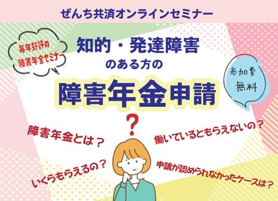 障害者向けの保険を取り扱う専門保険会社、ぜんち共済株式会社(本社:東京都千代田区、代表取締役社長:榎本重秋)は、2025年4月26日(土)に、知的障害・発達障害のある方の障害年金申請をテーマにしたオンラインセミナーを開催いたします。
