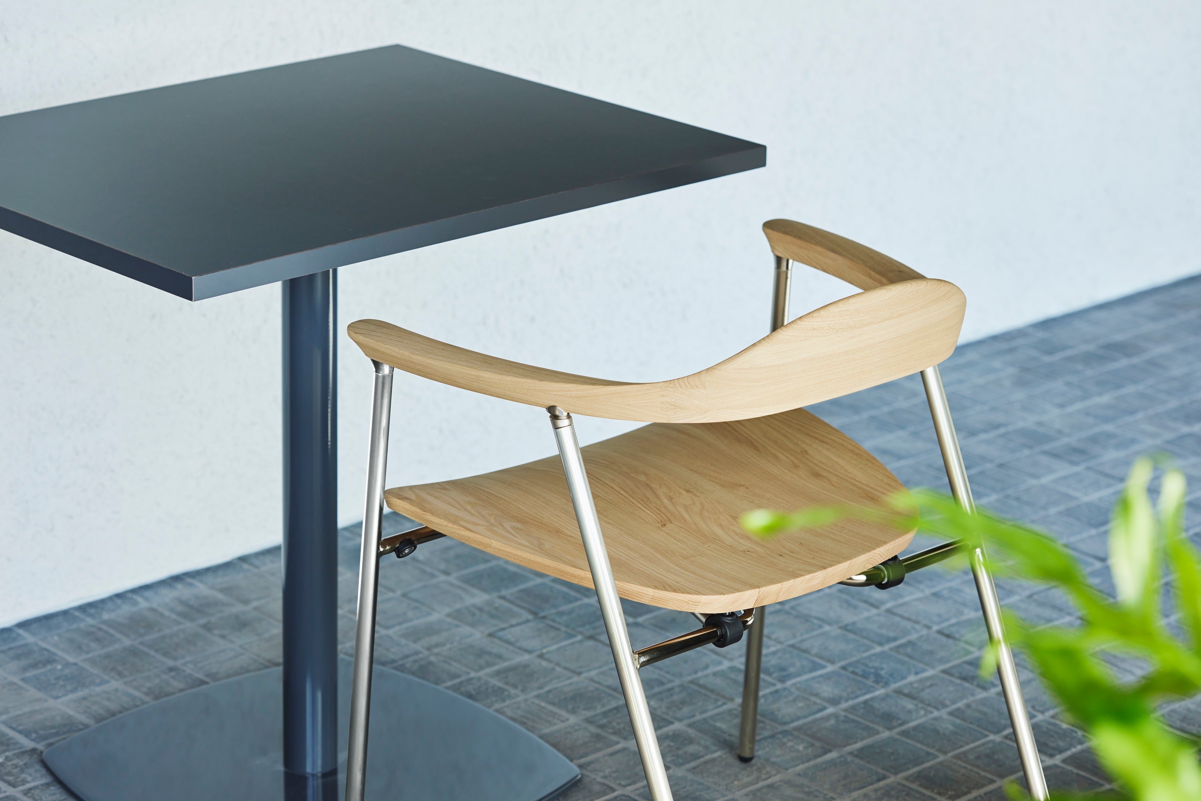 「クロッサ WOOD」は、ダイニングチェアのような美しいシルエットを備えながら、折りたたみ・自立・ネスティング収納を可能にした、ワークシーン向けの木製チェアです。