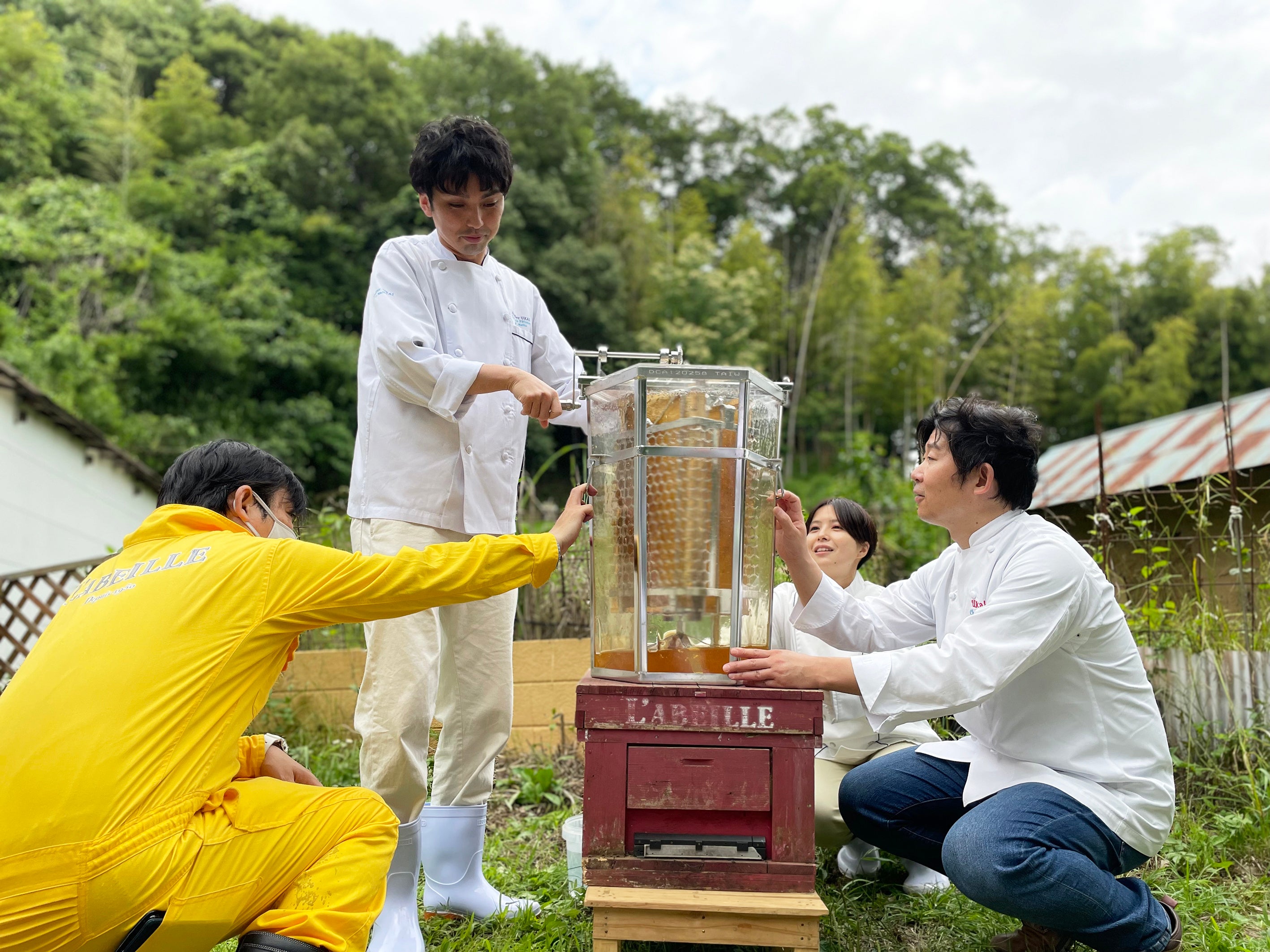 この度、高尾山麓や八王子に養蜂場を有するはちみつ専門店「L’ABEILLE」と出会い、養蜂場見学や採蜜体験のなかで、ミツバチの自然共存活動や1,600種類を超える植物が存在する高尾の豊かな自然と歴史を知り、高尾山麓で採れたはちみつの魅力を引き出したお菓子を作りたいと考えました。そして、高尾山麓の自然に想いを馳せ、食べることや使うこと、身近な環境のことを多くの方に伝えたいと思いコラボレーションが実現しました。