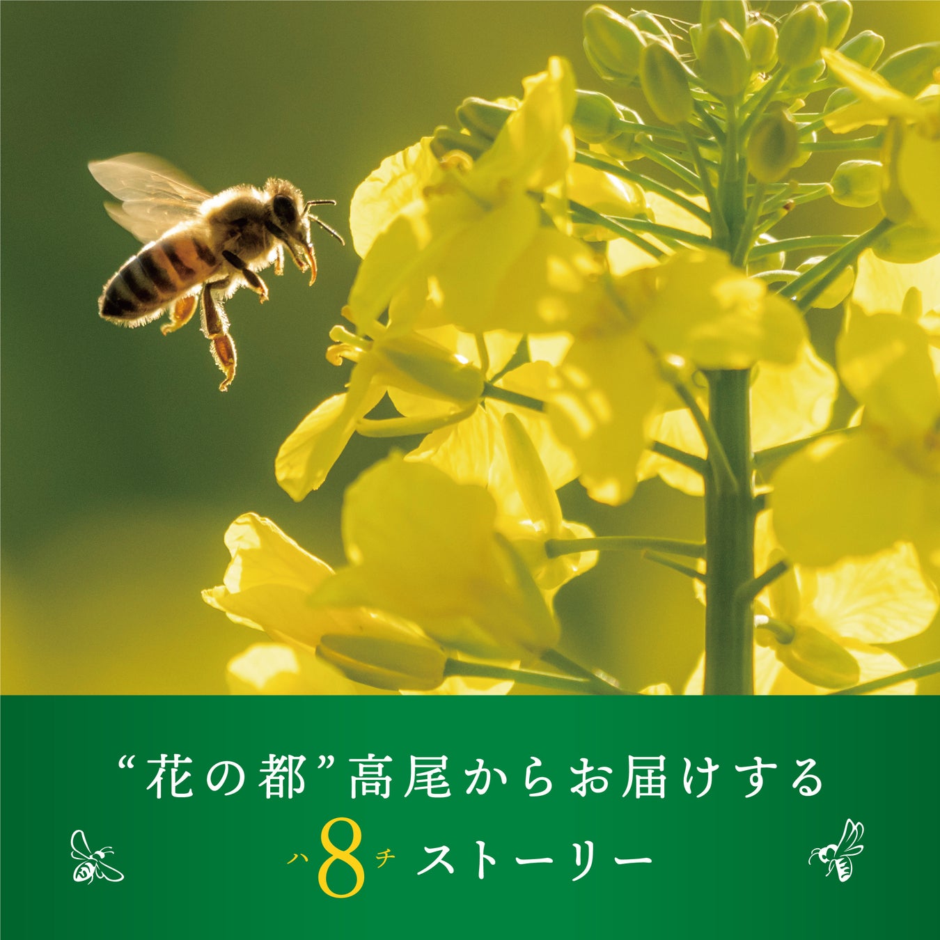 高尾の花々からミツバチが運んできた百花蜜の味わいを、ひとくちサイズのディアマンクッキーに凝縮しました。はちみつとはちみつカカオが入った小箱。さっくりとした食感、バターとはちみつが織りなす豊かな風味をお楽しみください。パッケージには、高尾の豊かな自然をイメージしたレリーフと、はちみつを想起させる柄や色合いを取り入れました。