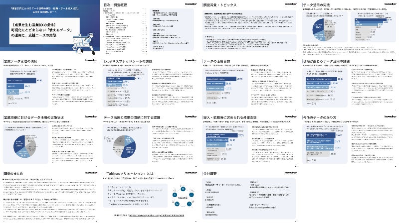 本調査を実施した株式会社キーウォーカーは、BIツール『Tableau(タブロー)』を活用したデータの「見える化」から「意思決定への活用」まで、一貫したデータドリブンな組織作りを支援する『Tableauソリューション』を提供しています。