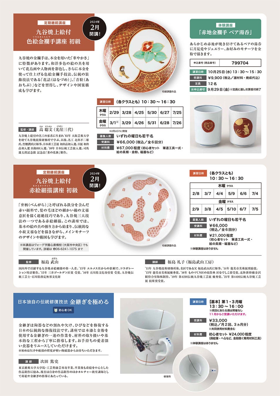 初心者から本格的に学べる日本の伝統工芸。人気作家や伝統工芸士が指導する有田焼・九谷焼絵付教室、新期開講!