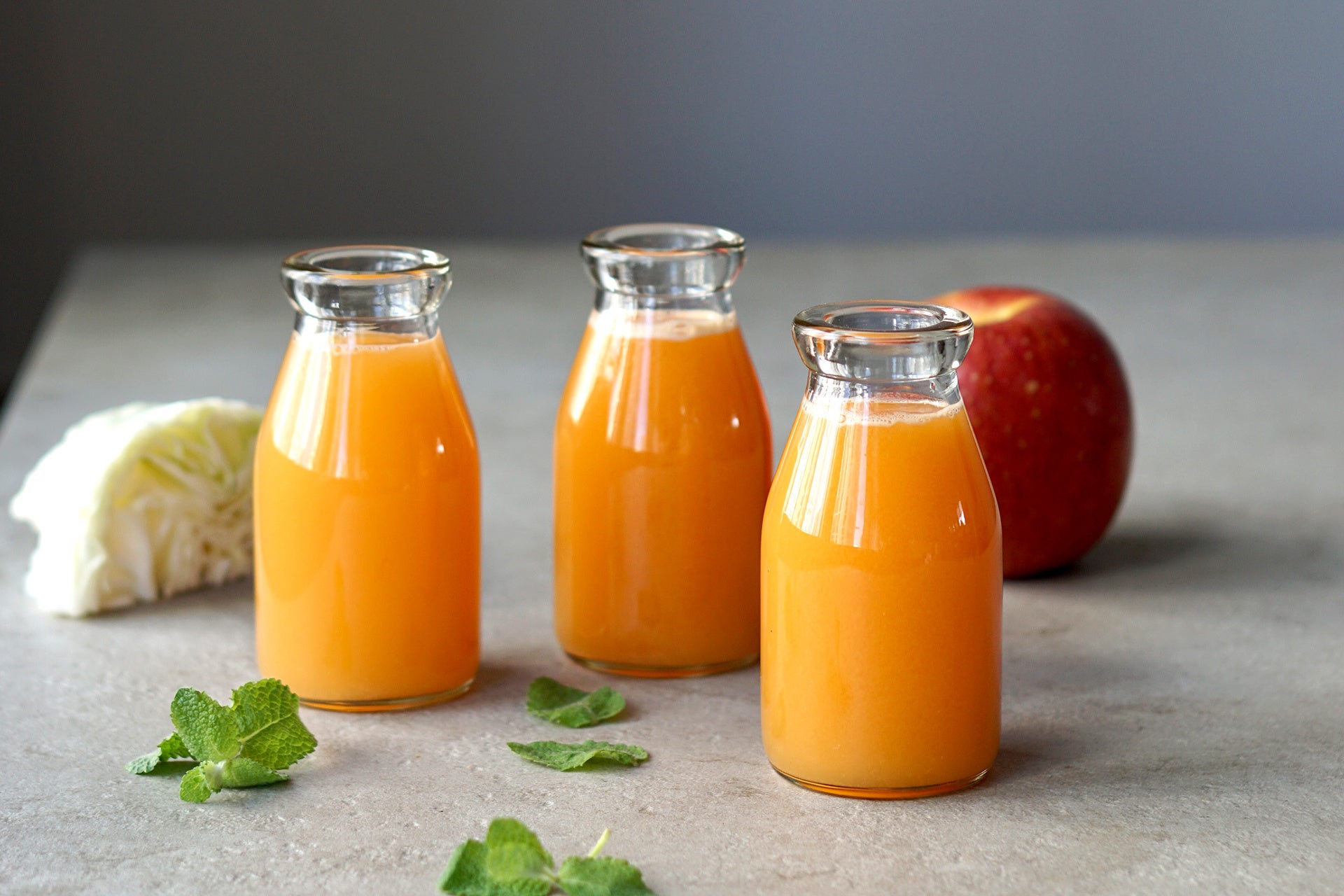 スロージュース(別名・コールドプレスジュース)は、スロージューサーで野菜や果物をゆっくりと圧縮(プレス)して搾ったジュースのことです。