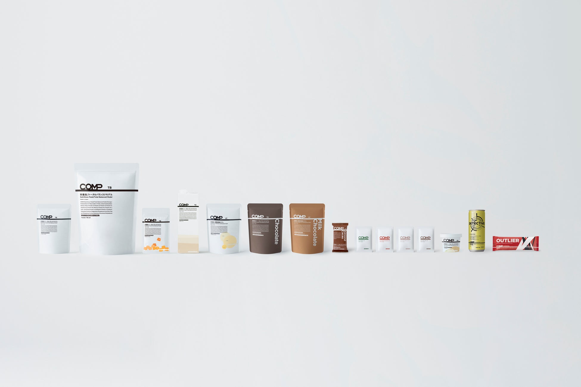 COMPは場面ごとに最適な栄養摂取を、厳密に設計された製品の開発によって提案し続ける栄養食ブランドです。厚生労働省「日本人の食事摂取基準(2020年版)」を参考に「完全食」「完全栄養食」をコンセプト*としたトータルバランスドモデル(TB)、食事において摂取する糖質量の調整を容易にする糖質調整モデル(LC)、エナジーバーやエナジードリンクなどの特定の課題解決を目指すためのコンセプトモデル(C)の栄養モデルをご用意。パウダー、グミ、ドリンク、バー・ブロック、アイス等、幅広いアプリケーション展開を実現する開発力も特徴です。