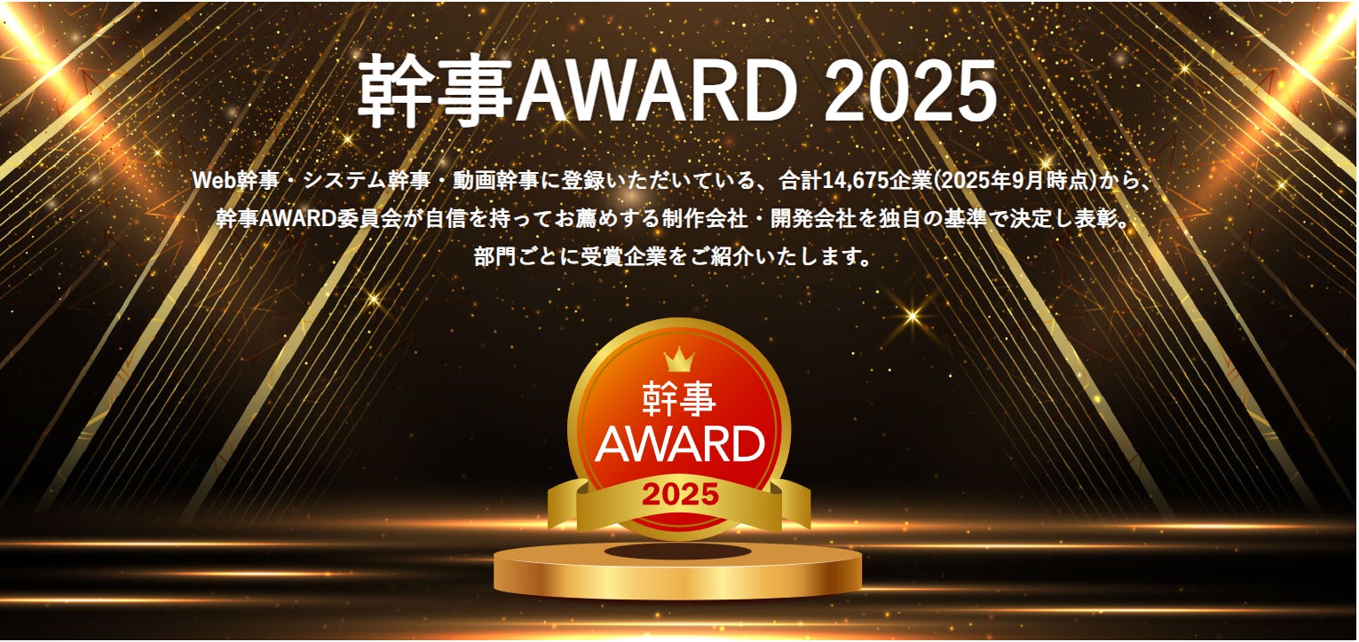 株式会社ユーティル(本社:東京都新宿区、代表取締役:岩田 真 / 以下、ユーティル)が提供する、WEBサイト制作、動画制作、システム開発の相談窓口「Web幹事」「動画幹事」「システム幹事」は、合計14,675企業(2025年9月時点)から幹事AWARD委員会が自信を持ってお薦めする企業を選出した「幹事AWARD2025」を実施。受賞企業36社をご紹介いたします。