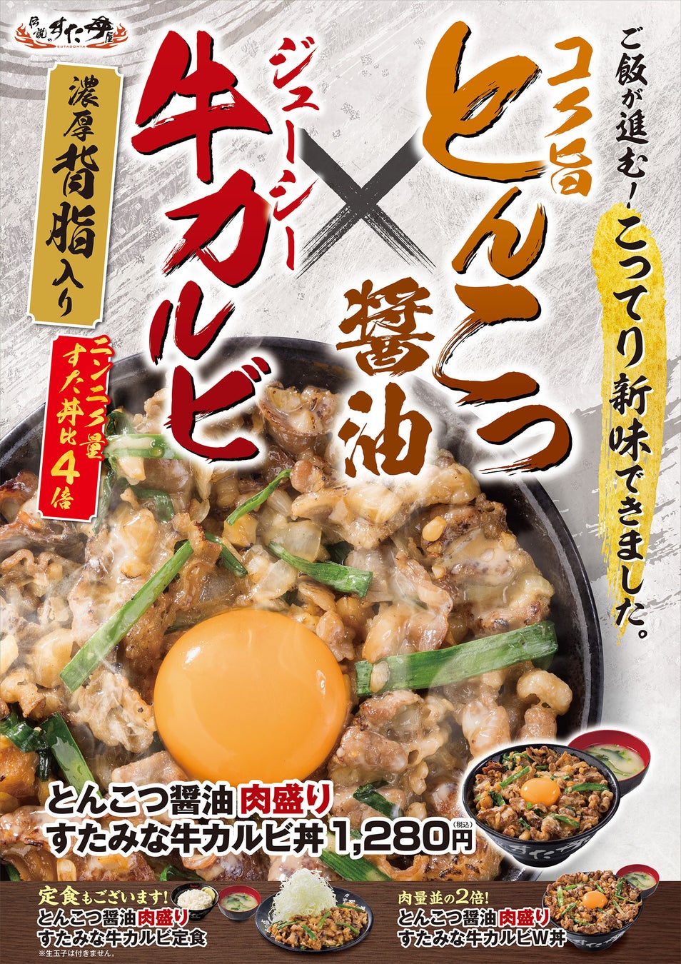 10月1日(火)全国のすた丼屋で販売開始!〈とんこつ醤油×牛カルビ〉を組み合わせたインパクト満点の丼がすた丼屋に登場!