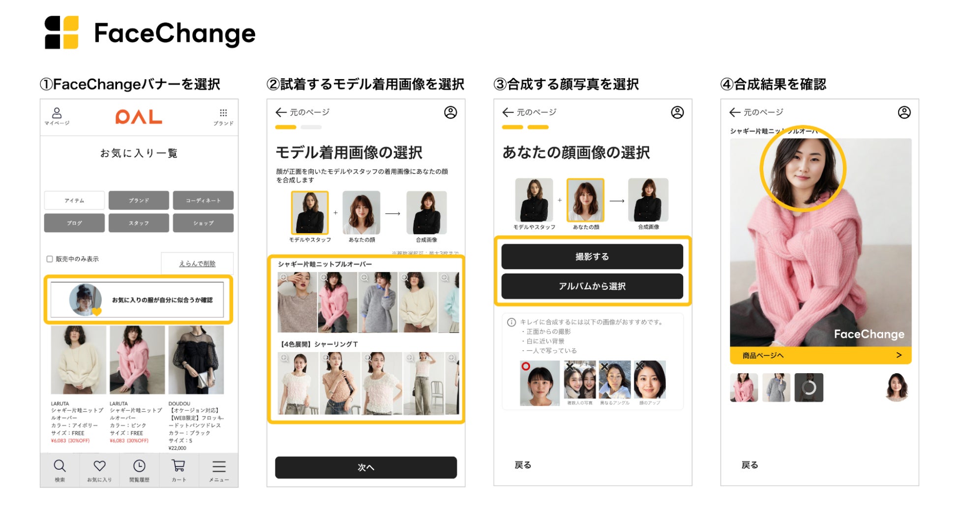 「FaceChange」新機能は商品ページやお気に入りページなど、様々なコンテンツからご利用いただくことができます。