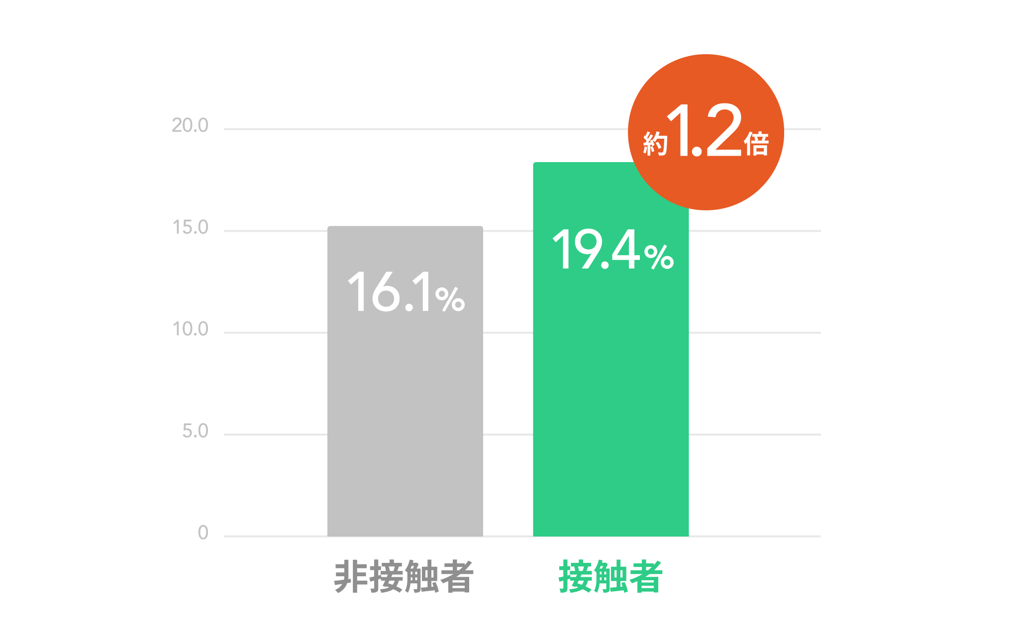 非接触者に比べて広告接触者の認知が約1.2倍となりました。