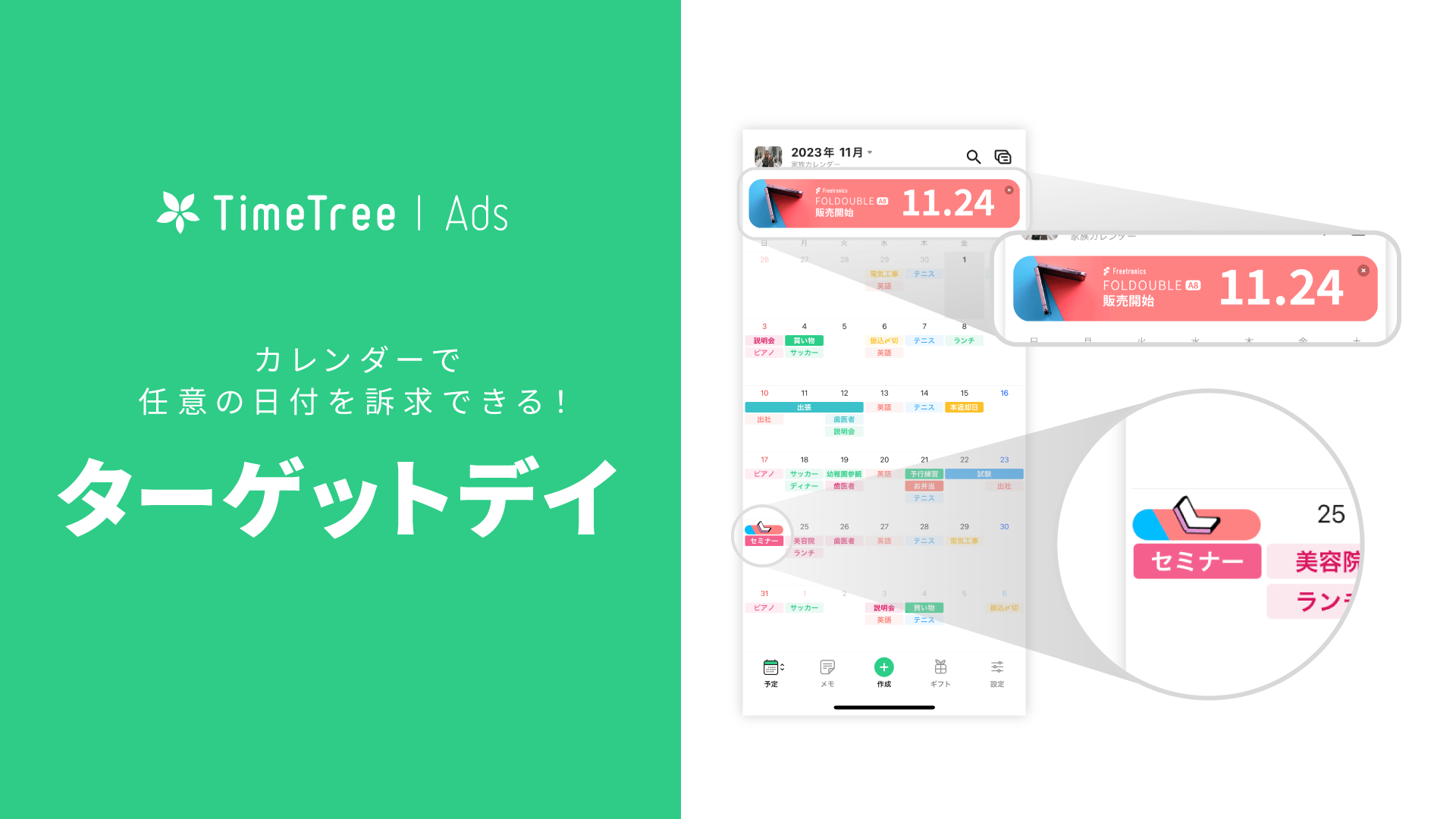 TimeTree、カレンダー上で任意の日付を訴求できる広告「TimeTree Ads ターゲットデイ」をリニューアル
