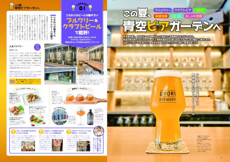 夏本番を迎えビールの美味しい季節が到来。本特集では、近年ブームのクラフトビールを楽しめるブルワリー併設のビアガーデンから、屋外でBBQをしながらビールを味わえるビアテラス、シェフが食材にこだわって作る料理自慢のビアレストランまで、ビールと一緒にシチュエーションや雰囲気を満喫できる店をご案内します。ビールの種類や、飲み放題プラン、お店からの絶景ポイントなどの情報付きで、秋までたっぷり3か月間使える保存版です。