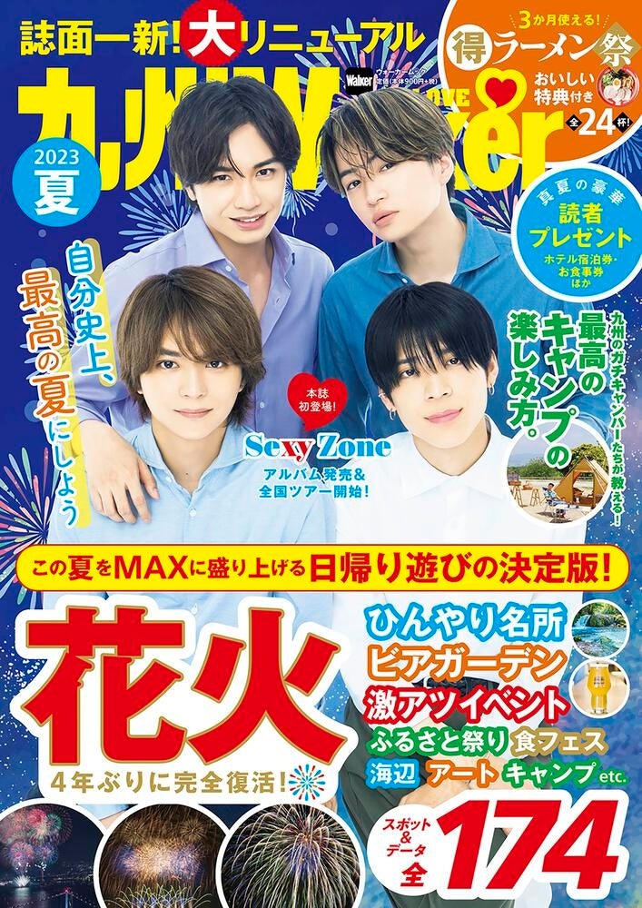そのほか、開放的な雰囲気のなかで楽しめる「ビアガーデン」、暑さを一気にクールダウンしてくれる「ひんやり名所」など、夏の日帰り遊び全174スポットを詳細データ付きで紹介。表紙&撮りおろしグラビアには、新作アルバムをリリースし、全国ツアーを開始したSexy Zoneが本誌初登場です!