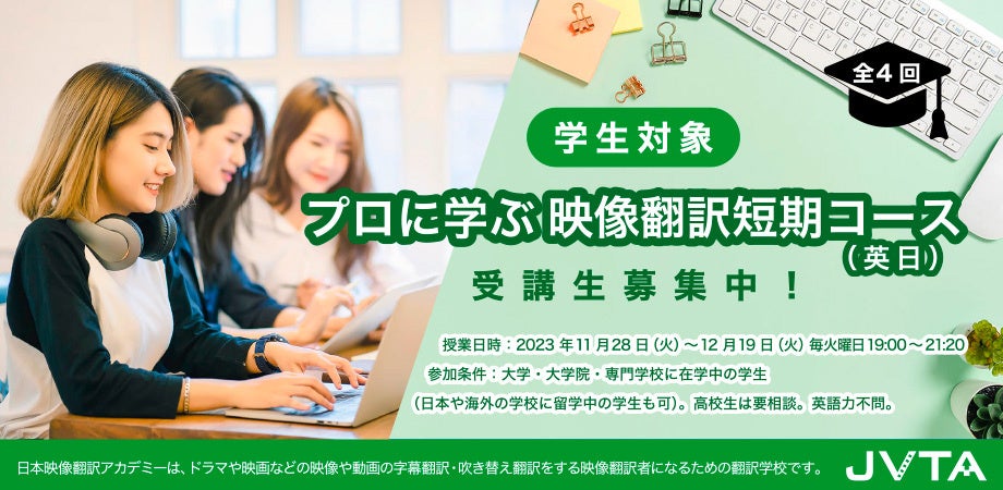 日本映像翻訳アカデミー、学生向けに映像翻訳を学ぶ特別コースを初開講