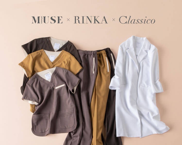 メディカルアパレルブランド「クラシコ」オトナミューズ×梨花とのトリプルコラボによる医療従事者を応援するメディカルユニフォームを3月28日(火)発売