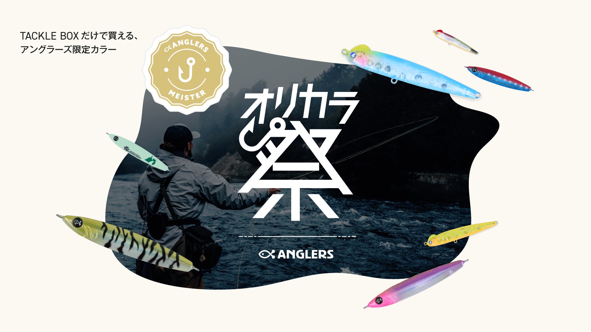 オリカラ祭とは、アングラーズマイスターが様々なルアーメーカーとコラボし、オリジナルカラーを考案するルアー販売イベントです。オリカラルアーは本音が集まる釣具通販「TACKLE BOX」にて数量限定で販売いたします。
