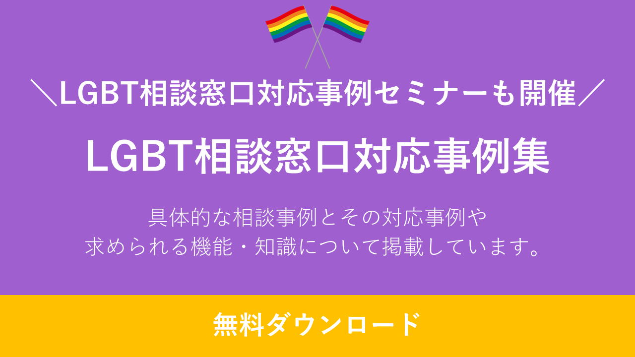【資料提供】LGBTに関する相談窓口の対応事例として『LGBT相談窓口対応事例集』を資料として提供開始。無料オンラインセミナーも同時開催。