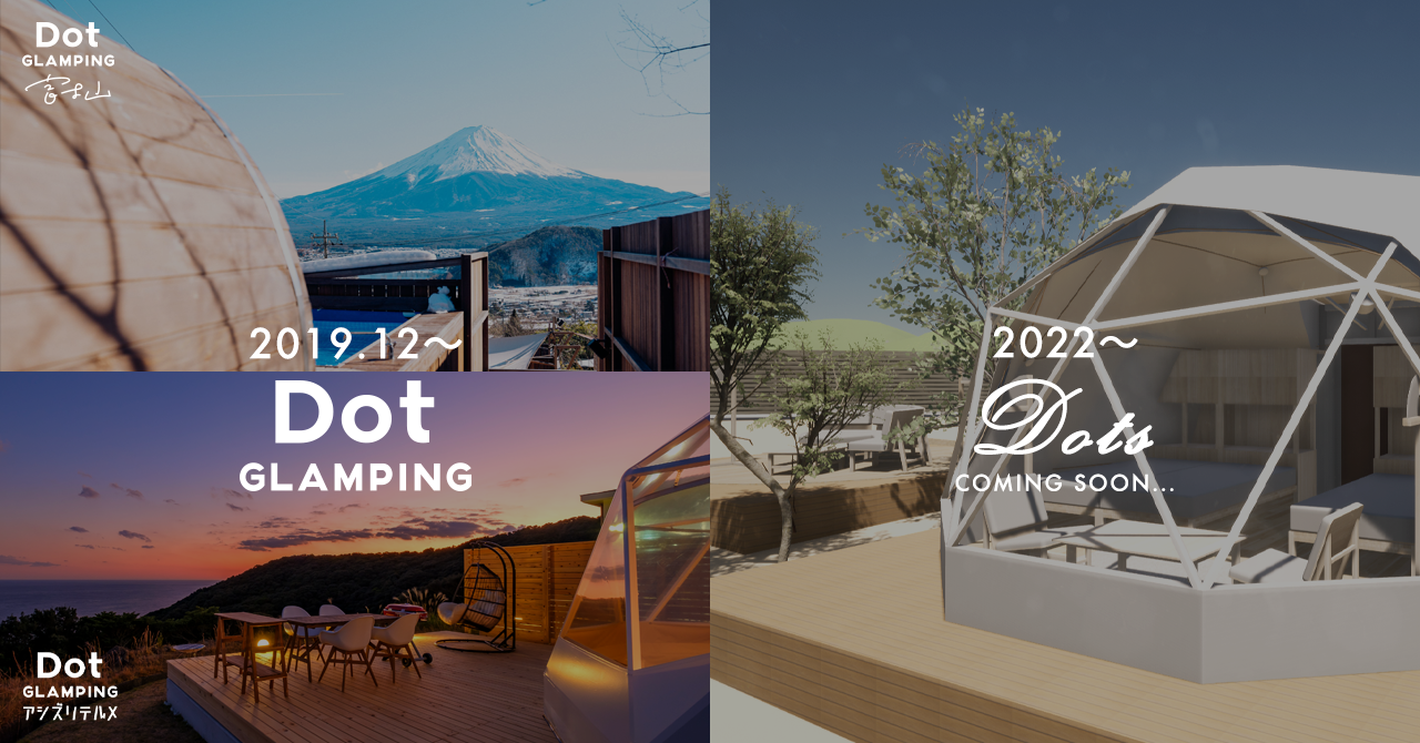 現在、「Dot Glamping」ブランドには「Dot Glamping富士山」「Dot Glampingアシズリテルメ」の2施設がございます。