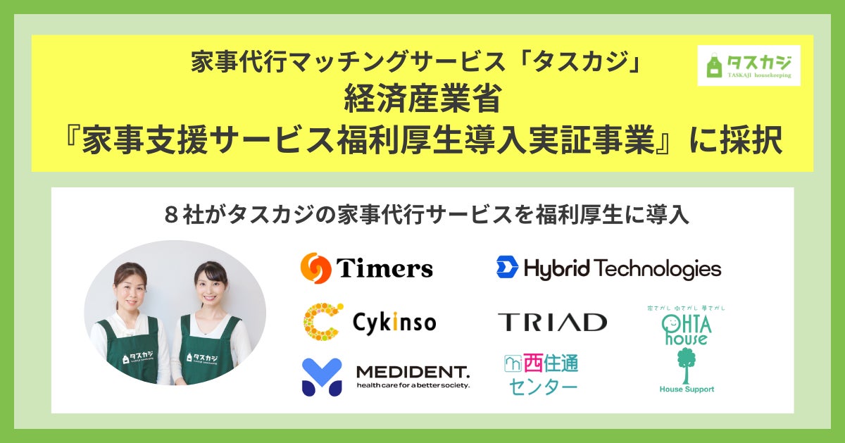 家事代行マッチングサービス「タスカジ」、経済産業省『家事支援サービス福利厚生導入実証事業』に採択!8社が福利厚生にタスカジを導入し、働き方改革を加速