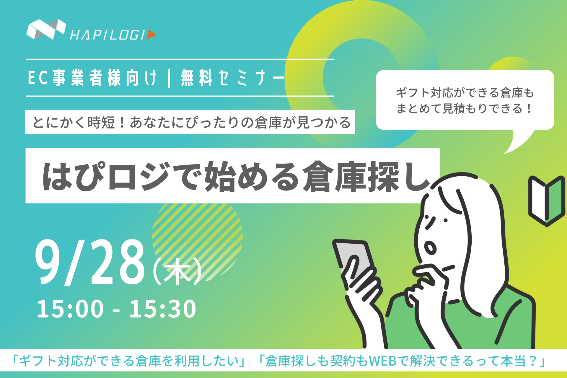 ◢◤とにかく時短!あなたにぴったりの倉庫が見つかる◢◤9月28日(木)開催| 【EC事業者さま向け】はぴロジで始める倉庫探し