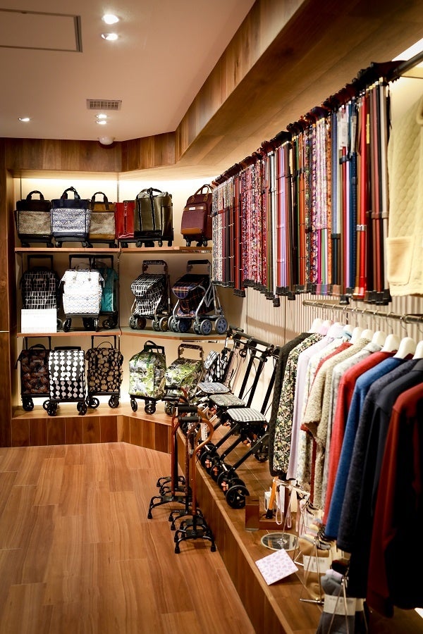 そして創業100年目にあたる1994年に、次の100年に向けてヘルスケア事業を新たに立ち上げ、アパレル出身ならではのお洒落な生地巻きステッキやシルバーカーなど、デザインと機能を併せもったヘルスケア商品を展開しています。