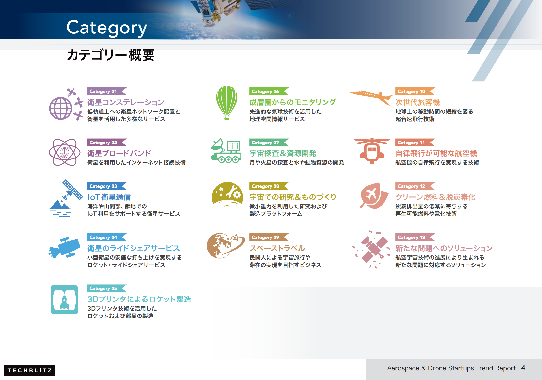 本レポートでは、宇宙航空産業のディープテック系スタートアップを中心に、大手企業とスタートアップの協業事例、そして特集ではUrban Air Mobility事業の展開を図るドローン・スタートアップ企業を取り上げました。