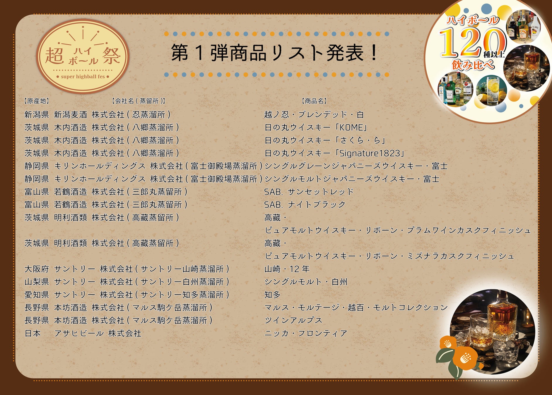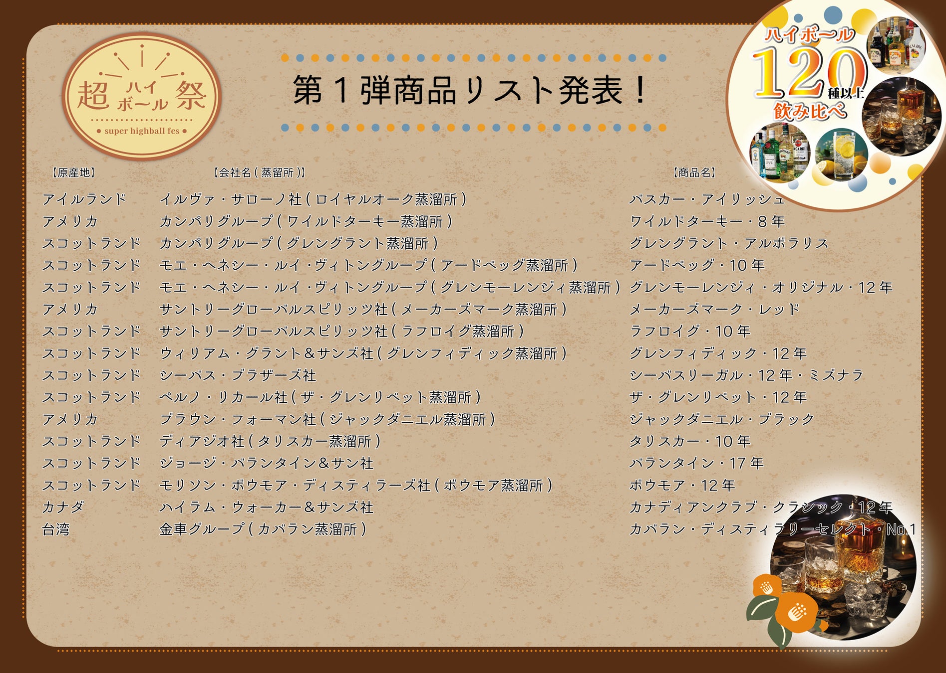 ハイボール好き必見!全120種以上のハイボールから、第1弾の出品リストを大公開!
