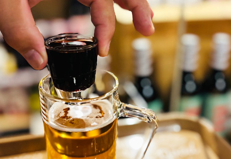 映画「リバー・ランズ・スルー・イット」で知られるボイラーメーカー。ビールにウイスキーを沈めた豪快なスタイルが有名ですが、「超ハイボール祭」では、ほろ苦ビール×甘口カシスの飲みやすいアレンジでご提供。遊び心あふれる一杯です。バーボンもご用意しています!