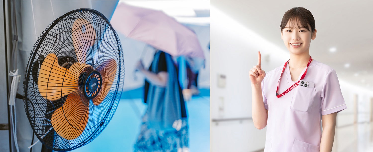 イベント期間中の暑さ対策として、大型扇風機の設置や救護テントを用意し看護師1名を常駐させるなどの対応を行います。ご来場の皆さまも、こまめな水分補給など熱中症対策へのご協力をお願いいたします。