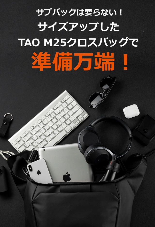 【ユーザーの声から誕生】サブバッグ必要なし、容量抜群の【TAO M25クロスバッグ】がMakuakeに登場