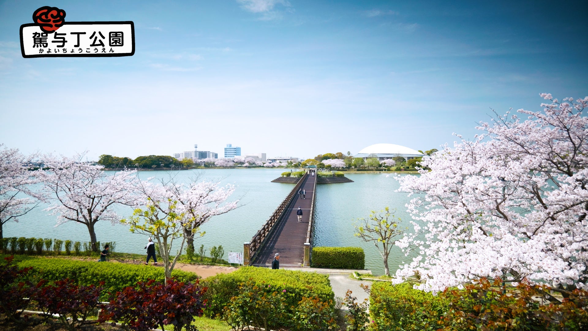 町のシンボルである「駕与丁(かよいちょう)公園」は、駕与丁池をぐるりと囲むように整備された自然豊かな公園で、季節の花を楽しむことができます。特に、春には遊歩道一帯に700本の桜が咲き誇り、春と秋には180種・約2400株の色とりどりのバラが花を咲かせ、多くの人が公園を訪れます。