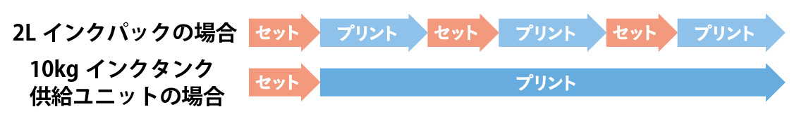 これらは、ランニングコスト低減とあわせてインク・メディアの取り換えによるダウンタイム軽減とお客様の作業負担軽減にも貢献します。