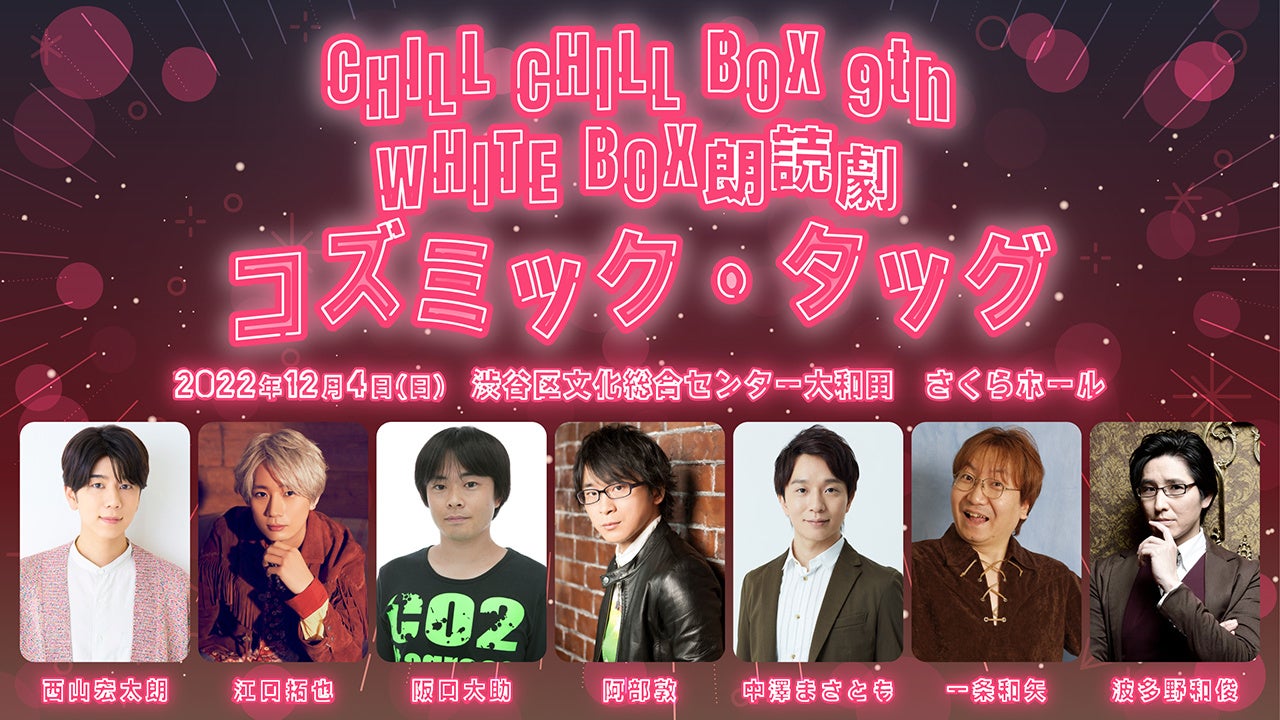 CHILL CHILL BOX 9th WHITE BOX 朗読劇「コズミック・タッグ」は、2022年12月4日(日)渋谷区文化総合センター大和田 さくらホールにて開催されます。