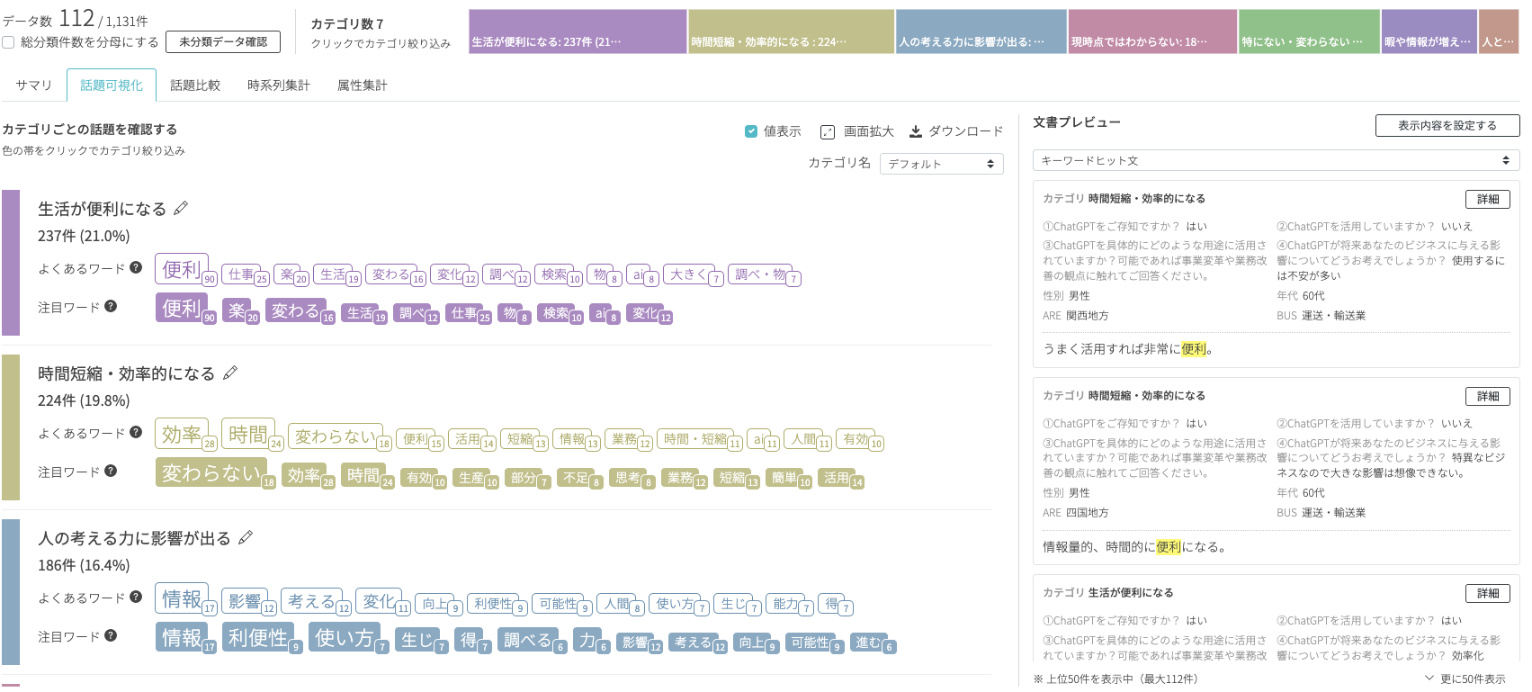 導入実績100社を超え、前年対比255%で成長中のAIテキスト分析ツールです。日々の業務が忙しい方でも、テキストデータをアップロードするだけで迷わず簡単に価値あるデータを抽出できます。自社サービスの改善や新サービスの開発にむけて、顧客の声や社内の声、セールストークなどの分析業務とそのための仕組みづくりをサポートします。