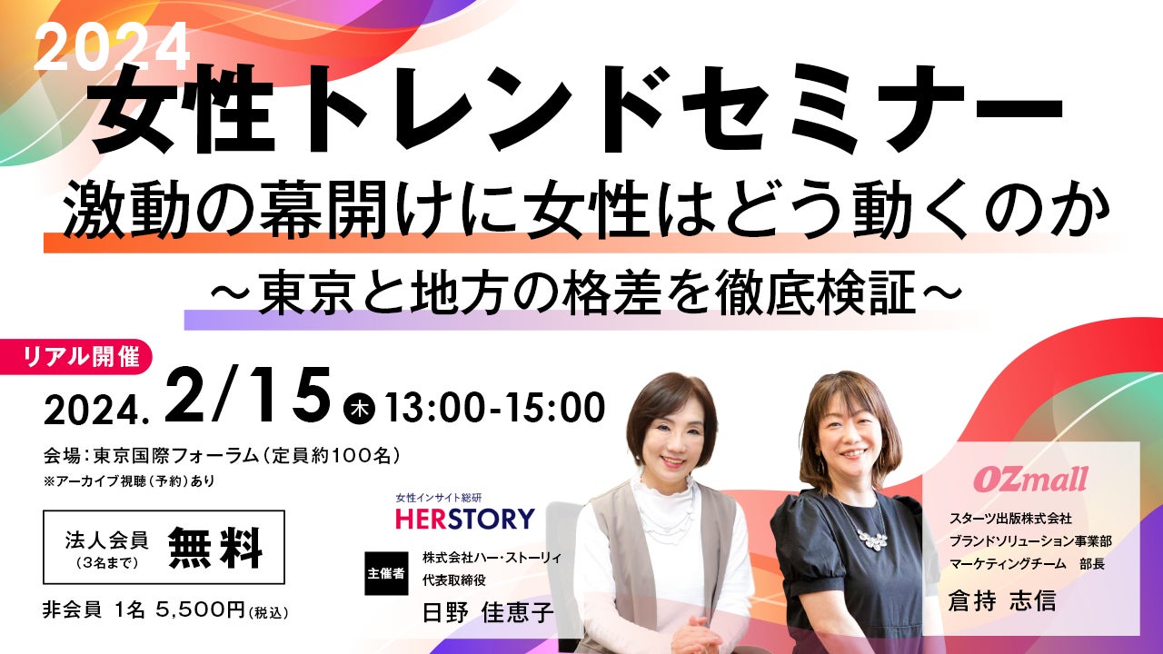 【2/15女性トレンドセミナー開催】OZmall(オズモール)×女性インサイト総研HERSTORY『激動の幕開けに女性はどう動くのか。東京と地方の格差を徹底検証!』