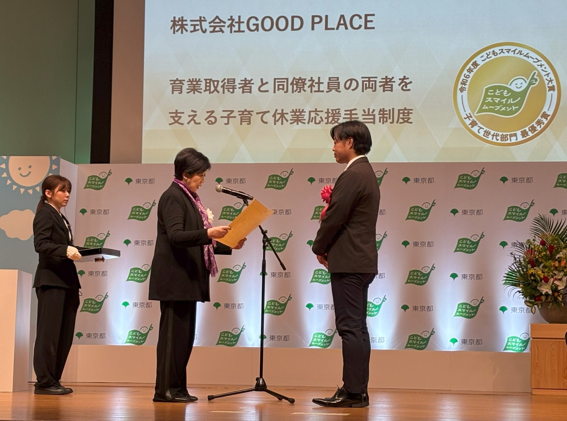 GOOD PLACEが推進する育児支援制度「子育て休業応援手当」が、東京都主催の「こどもスマイルムーブメント大賞」子育て世代部門最優秀賞を受賞