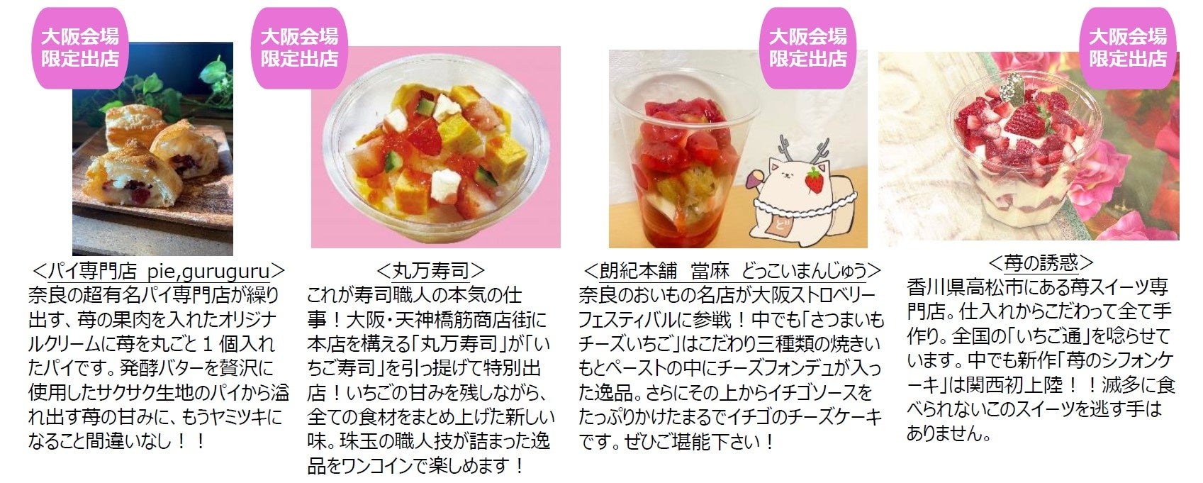 ◇大阪会場限定出店などいちごメニューを販売する飲食店や物販店が計16店舗登場!