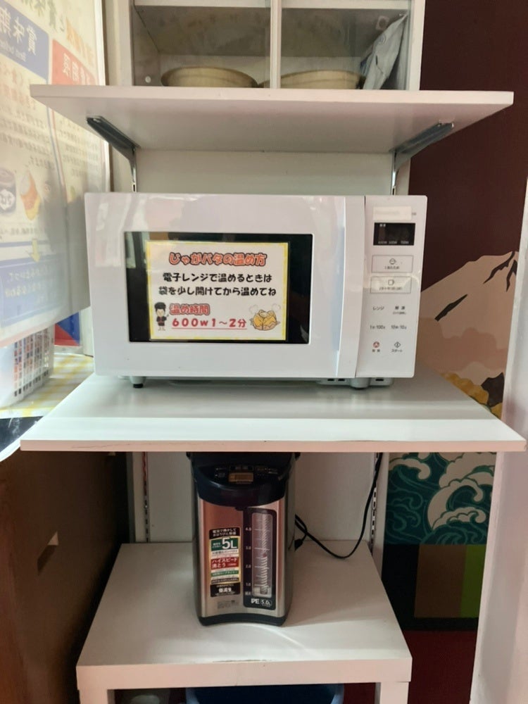 どちらも獲得したら店舗にあるポットや電子レンジで調理し、その場で食べることができます。