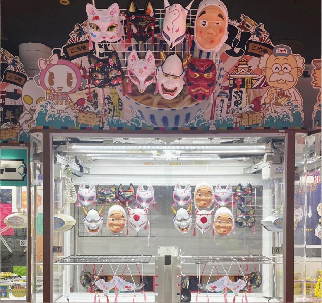 夏祭りに行くと昔からあるお面屋さんもクレーンゲームで再現。