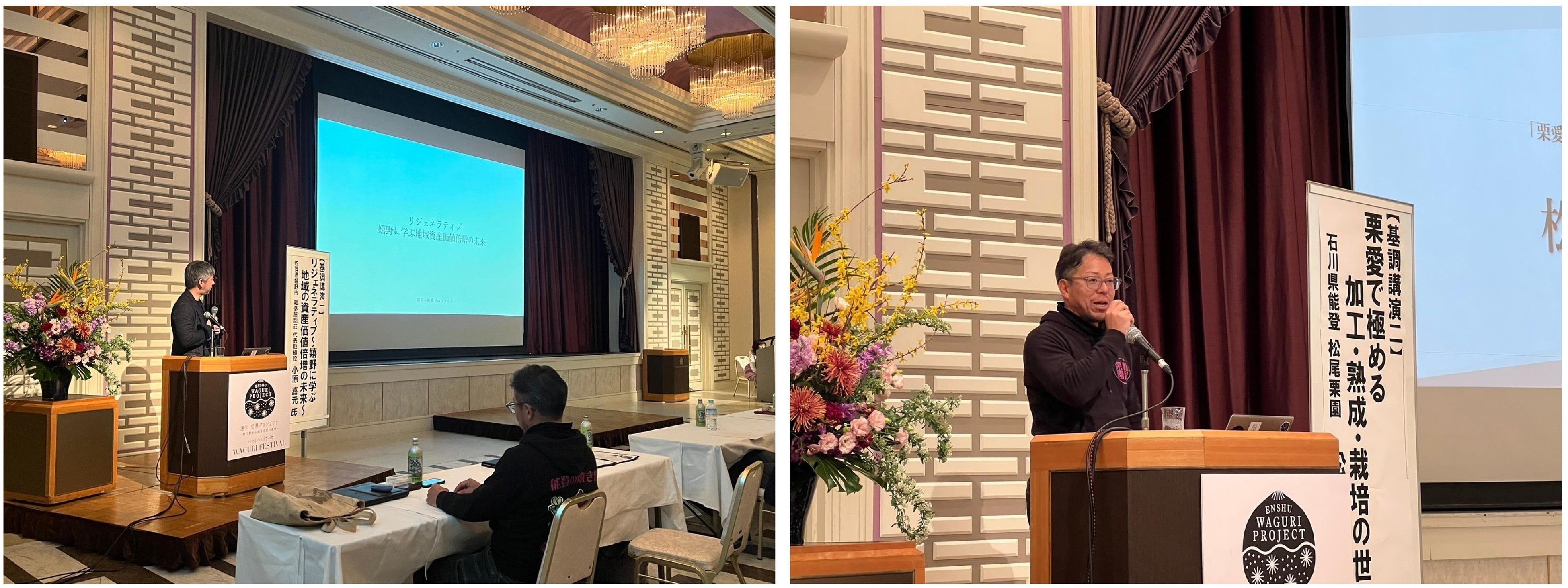 2日目のフォーラムでは佐賀県嬉野市和多屋別荘の代表であり地域資産価値の向上に尽力される小原嘉元氏と、優れた熟成栗の技術を持ちながら今回の能登半島地震で被災された石川県輪島市松尾栗園の松尾和広氏による基調講演が行われました。