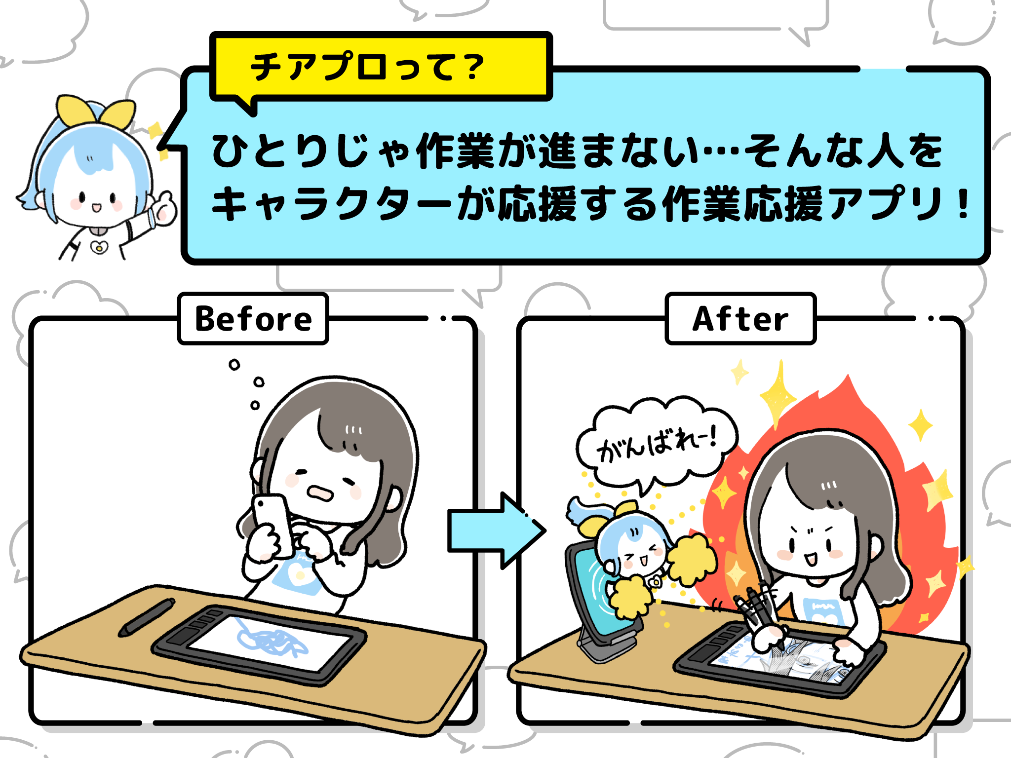CheerProは、キャラクターが頑張るあなたを応援してくれる「作業応援アプリ」です。