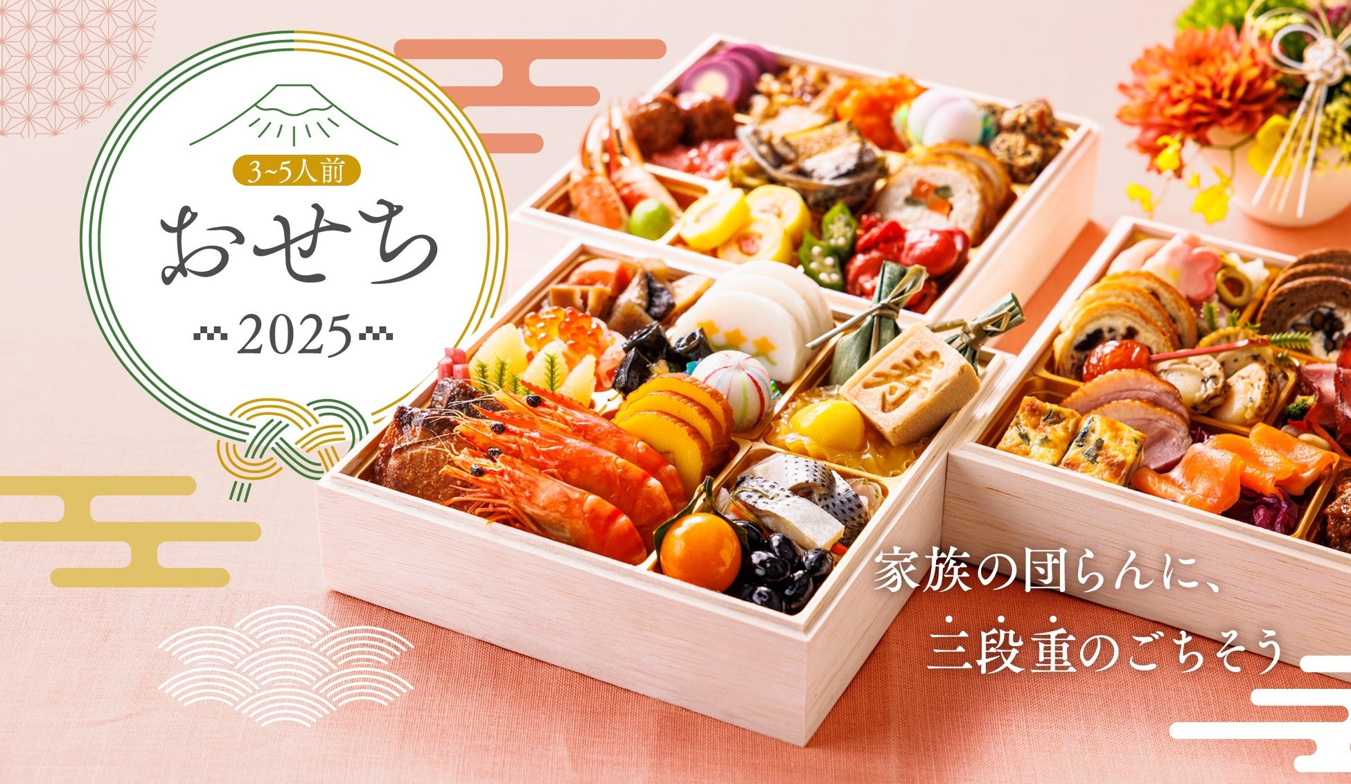 リテール業界に特化してビジネスのDXを支援する株式会社イングリウッド(東京都渋谷区、代表取締役社長兼CEO:黒川隆介)が運営する冷凍おかず定期便サービス「三ツ星ファーム」は、「おせち2025」を数量限定で販売することが決定しました。2024年9月2日(月)よりおせちの予約を開始いたします。昨年好評だった3〜5人前の三段重に加え、おせちと年越しそばのセットを初めてご用意。また1〜2人前用二段重も追加でご用意するなど、忙しい中でもお客さま一人ひとりのお正月の過ごし方に合わせてメニューを拡充しました。