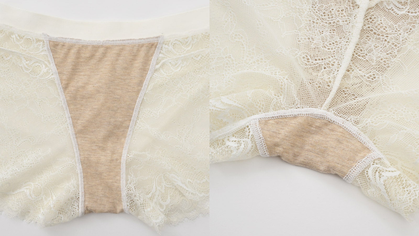 お肌のことを考え、フロント部分からマチにかけての裏地素材には、お肌にやさしいオーガニックコットン100%素材を使用。 フロント部分とクロッチを接ぎ合わせる縫い目を無くし、ごろつき感の少ない優しい仕様にしました。