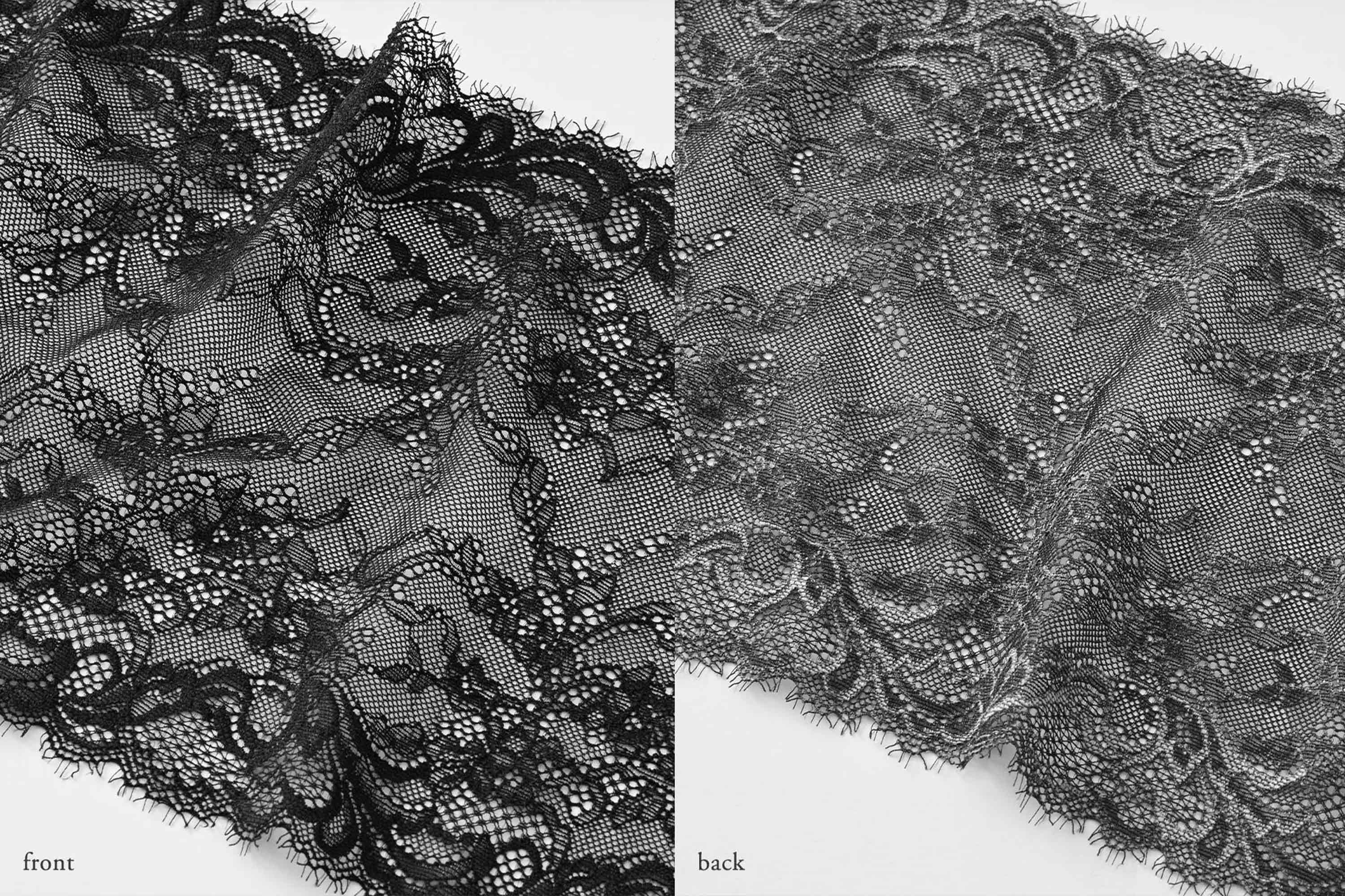 海の波を連想させるようなウェーブデザインをほどこした、線画のような繊細で美しいオリジナルレース。