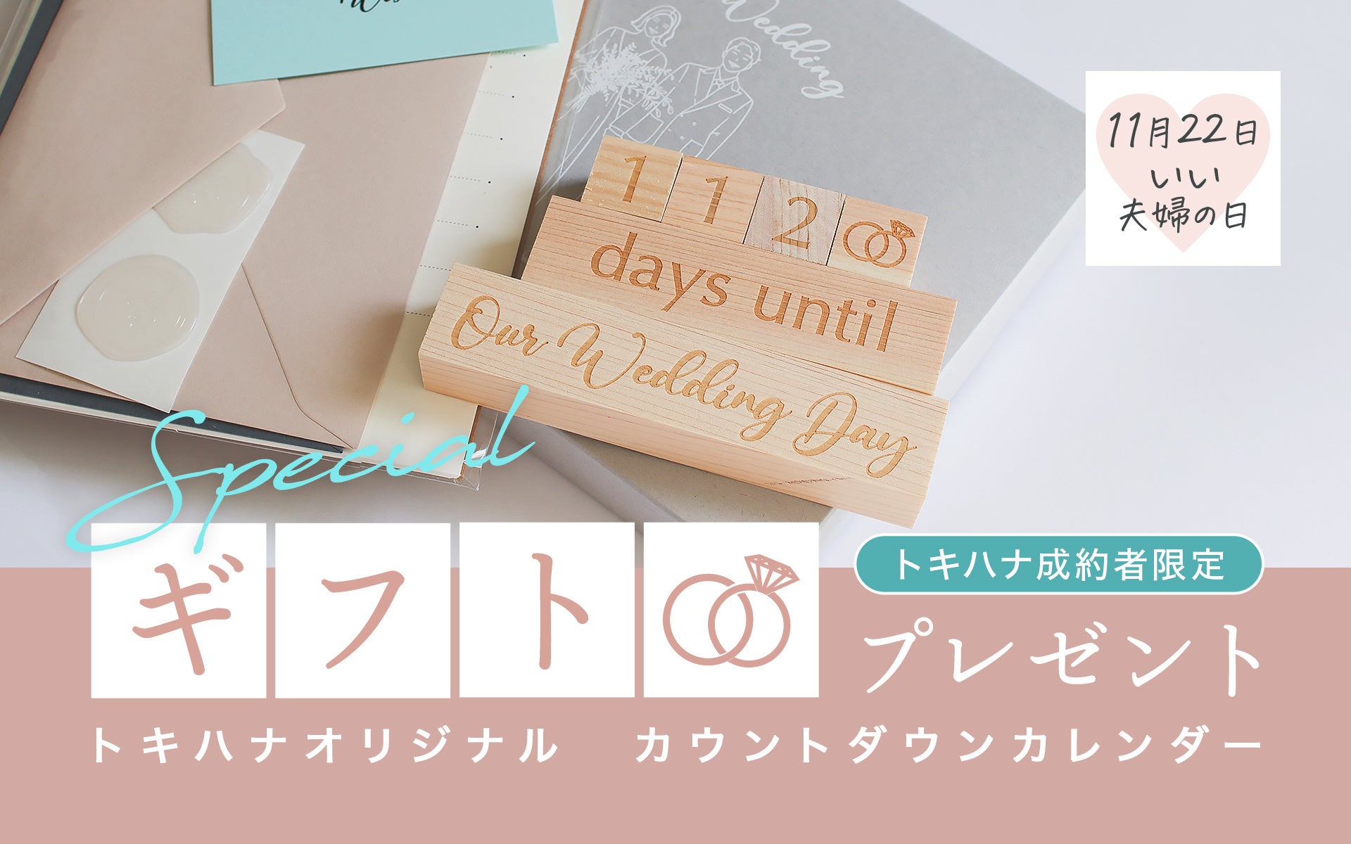 LINEでできる式場探し「トキハナ」が、11月22日「いい夫婦の日」を記念して、"結婚式までのトキを輝かせる"「カウントダウンカレンダー」を22名にプレゼント!