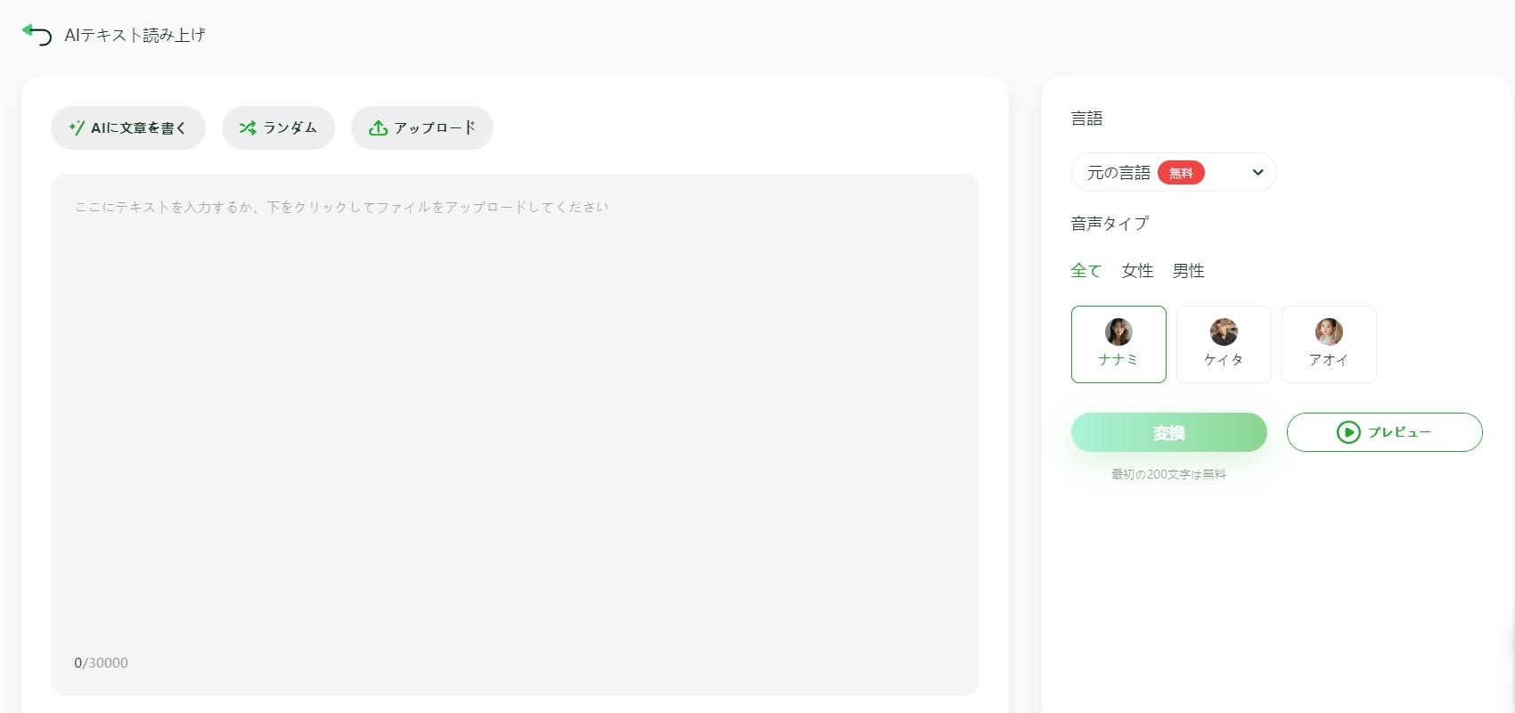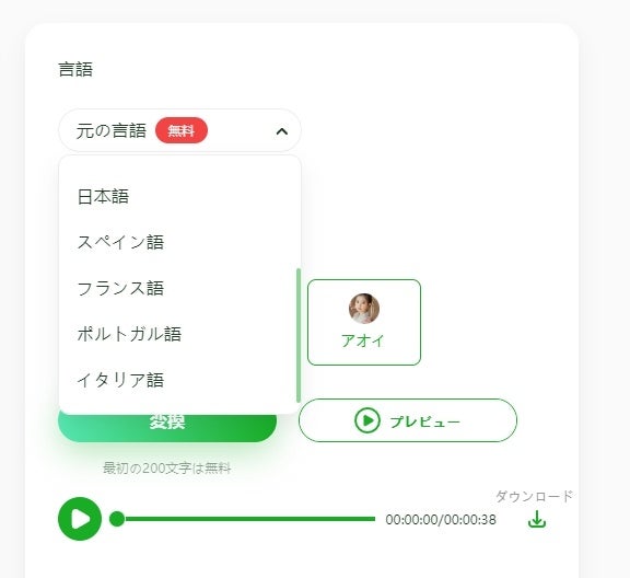 プレビュー:テキストを音声に変換する前に、プレビュー機能で満足するかどうかAI読み上げを確認できます。