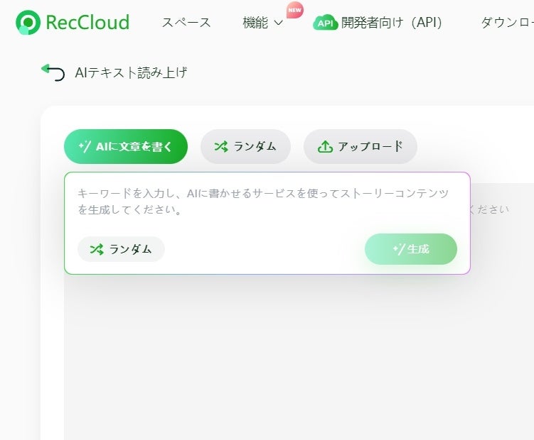 AIに書かせる:キーワードを入れて、AIに読み上げるテキストを書かせることも可能です。