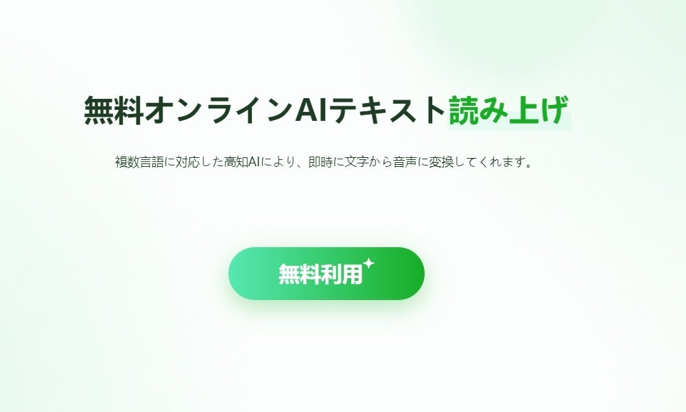 RecCloudのAIテキスト読み上げのウェブページを開いて、「無料利用」をクリックし、表示される画面でブランクに読み上げるテキストを入力し、音声タイプを選択して、「変換」ボタンをクリックするだけで、AIが自動的に音声を生成します。