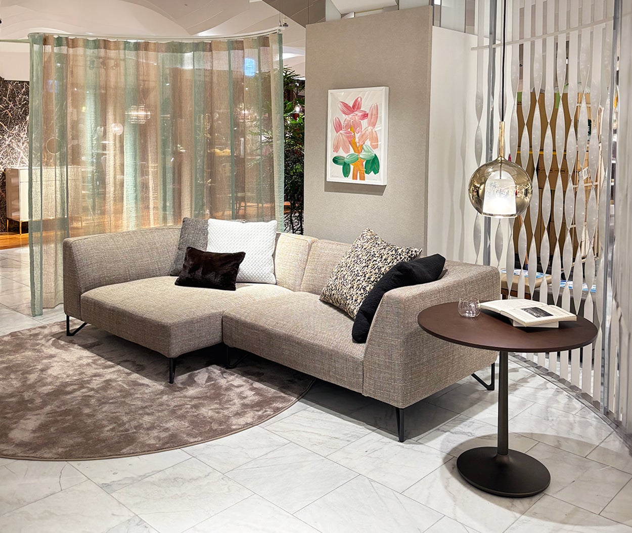 照明、ラグ、クッション、アートはメーカー協力のもと、通常はお取り扱いのないアイテムも含めてセレクト。直営店での展示とは少し趣を変えた、この季節ならではのPOP UPをぜひお楽しみください。
